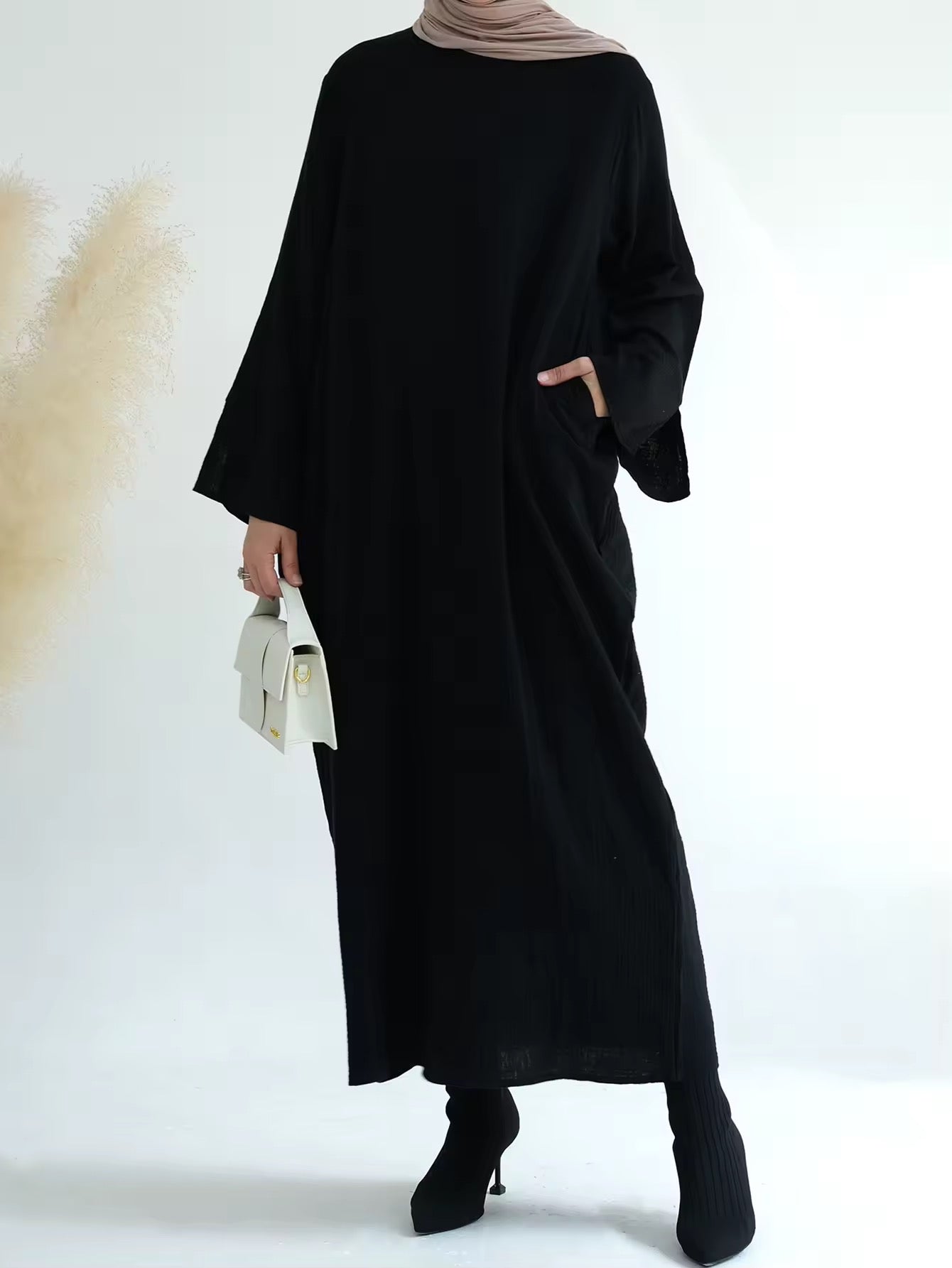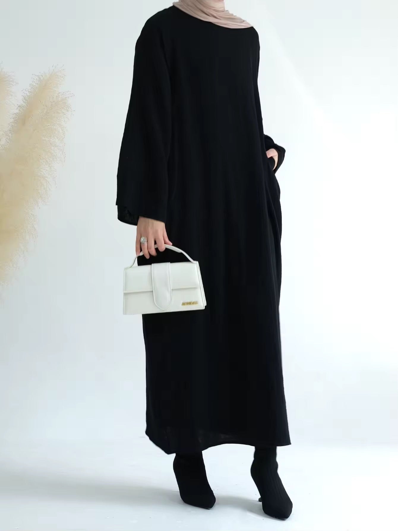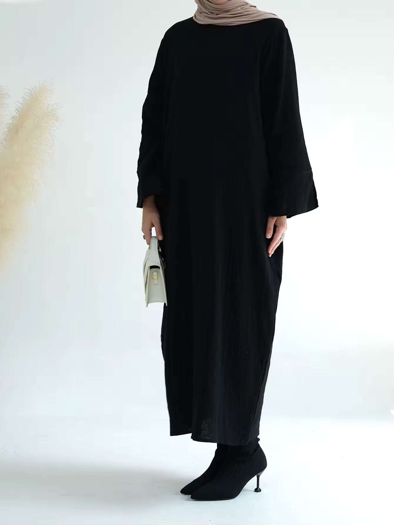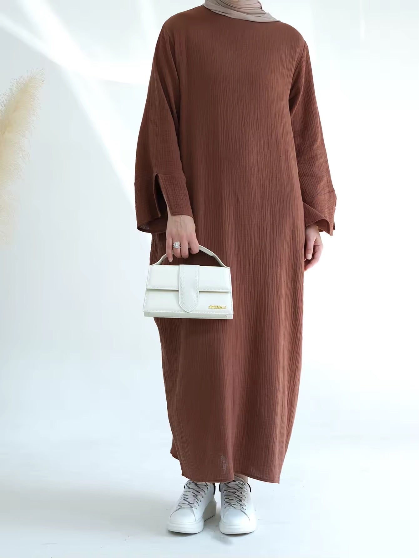 Unser luftiges Maxikleid aus hochwertigem Musselin ist die perfekte Kombination aus Stil und Bequemlichkeit. Mit seiner lockeren Passform, den eleganten weiten Ärmeln und dem minimalistischen Design ist es ideal für warme Tage, besondere Anlässe oder entspannte Alltagslooks. Das Kleid verleiht dir eine mühelose Eleganz und schmeichelt jeder Figur. Erhältlich in den Farben Schwarz, Creme und Braun.